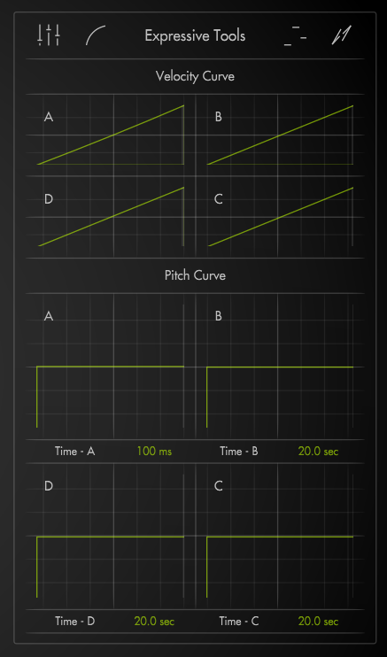 Change performance dynamics with customizable Velocity and Pitch Curves, offering precise control over response and timing.