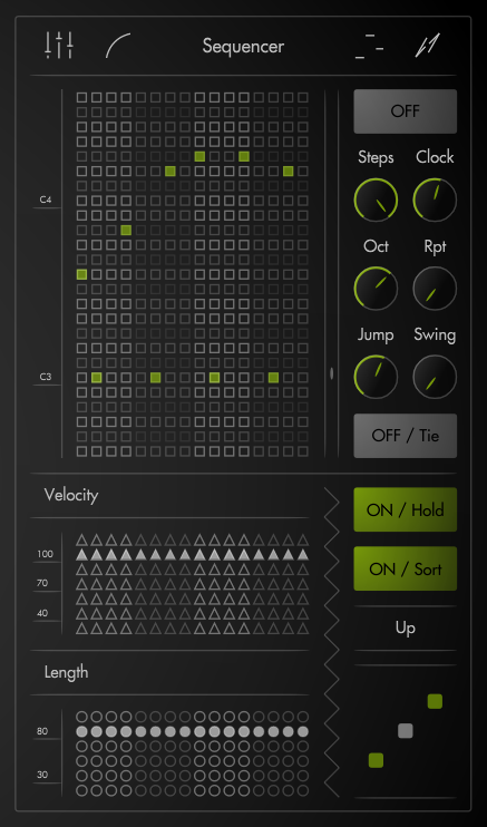 Create dynamic patterns with the built-in Sequencer, perfect for adding rhythmic movement, melodic phrases, and evolving textures to your sound.